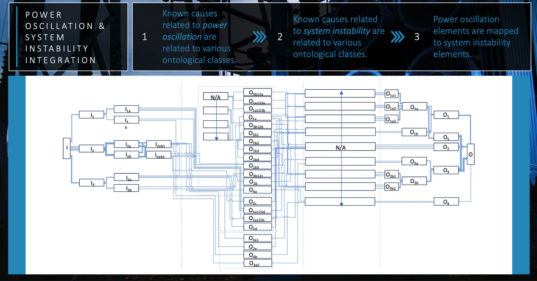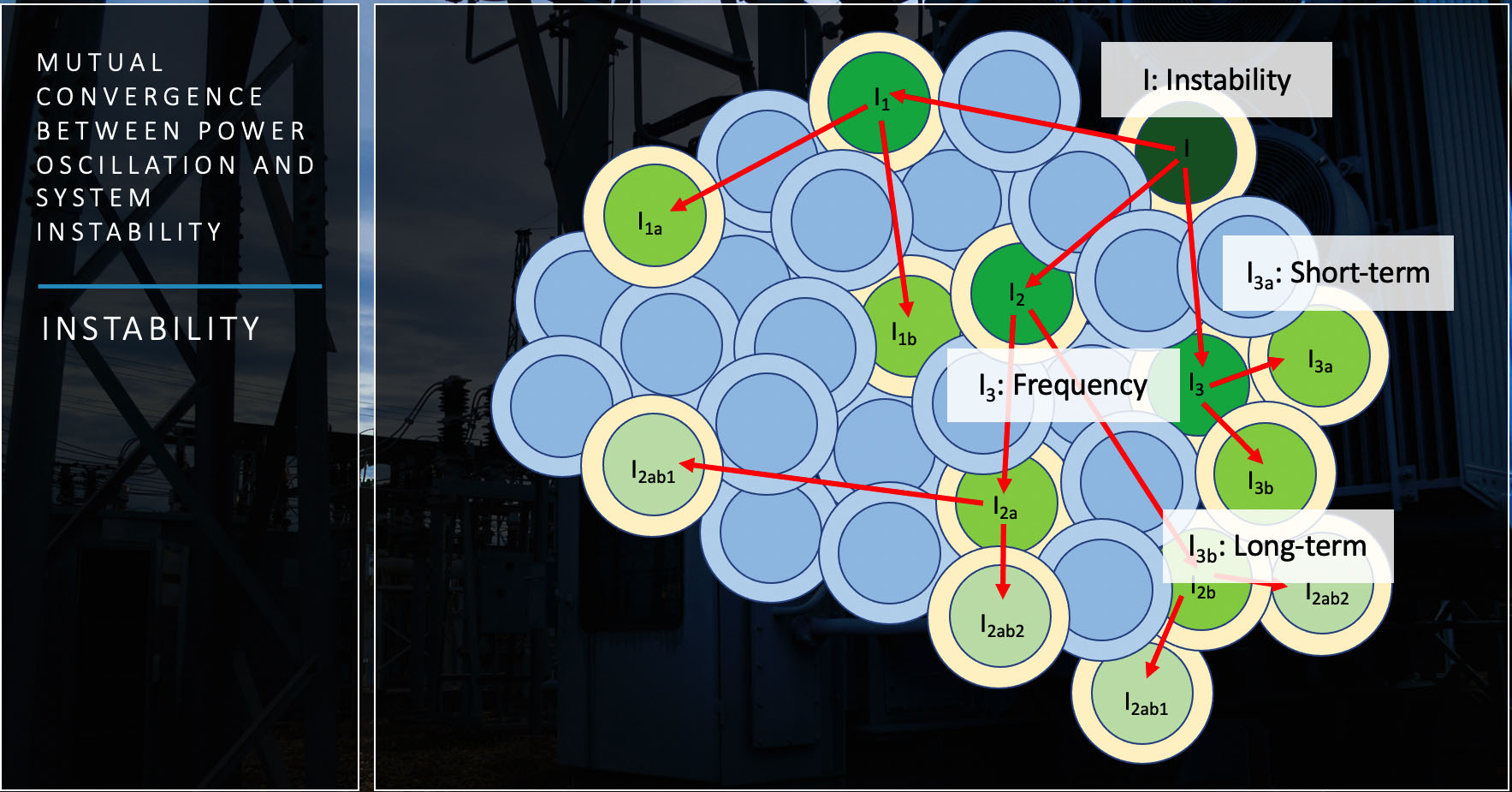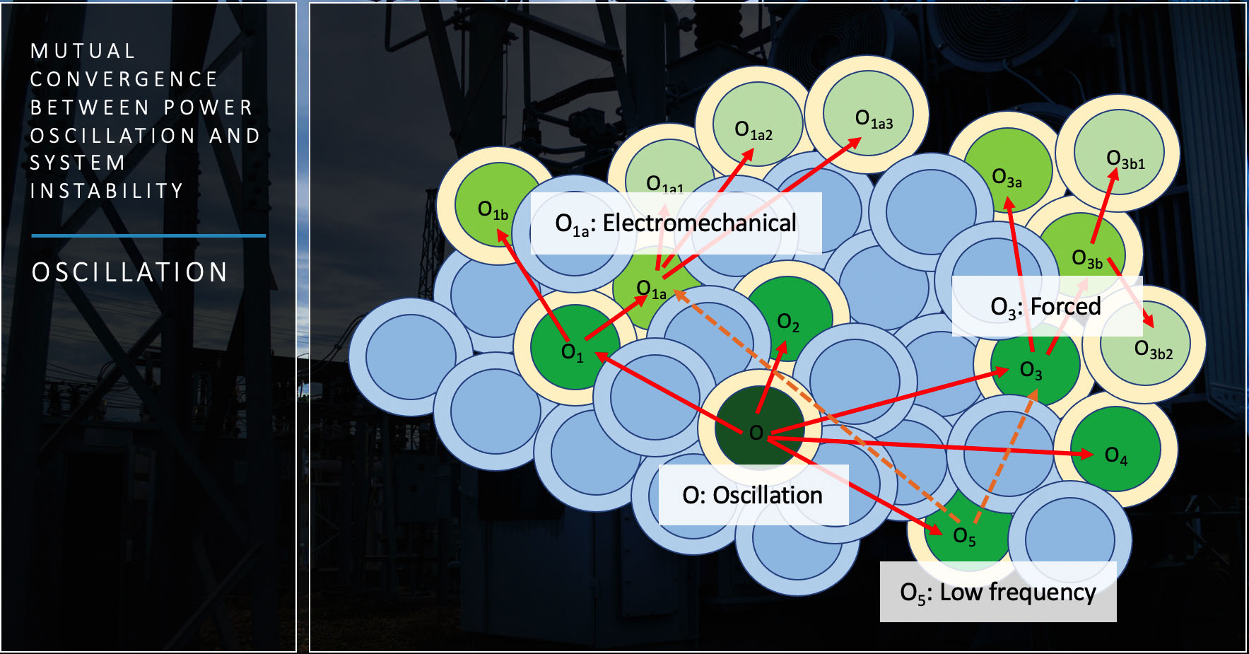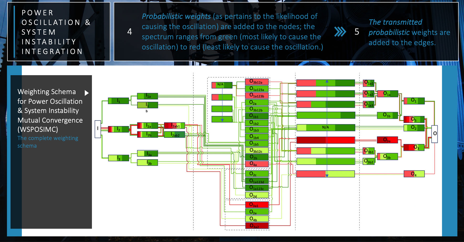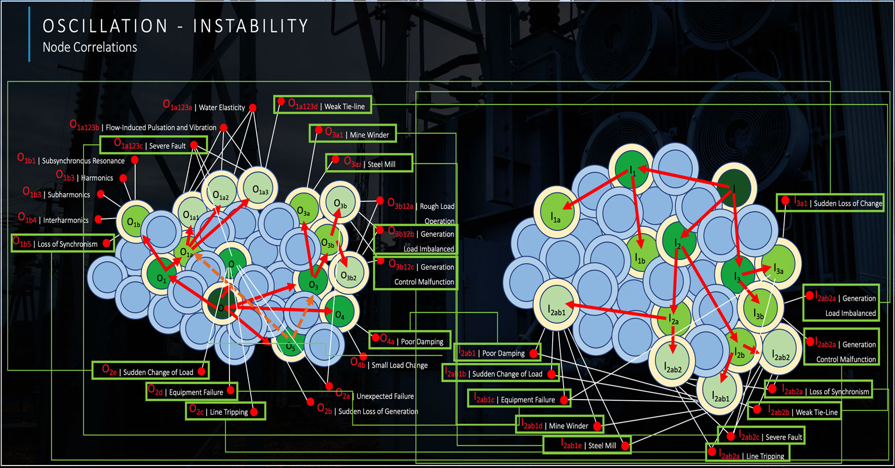 By way of background information, our Resiliency Engineering® Software CONOPS is predicated upon correlating the characteristics and events between the power oscillation vantage point (Figure 1) and system instability vantage point (Figure 2). Machine learning is utilized for the ensuing node correlations among the involved power oscillation and system instability elements (Figure 3). Collectively, Figures 1 through 3 present a logical progression of: (1) Power Oscillation, (2) System Instability, and (3) Node Correlations of Oscillation and Instability.